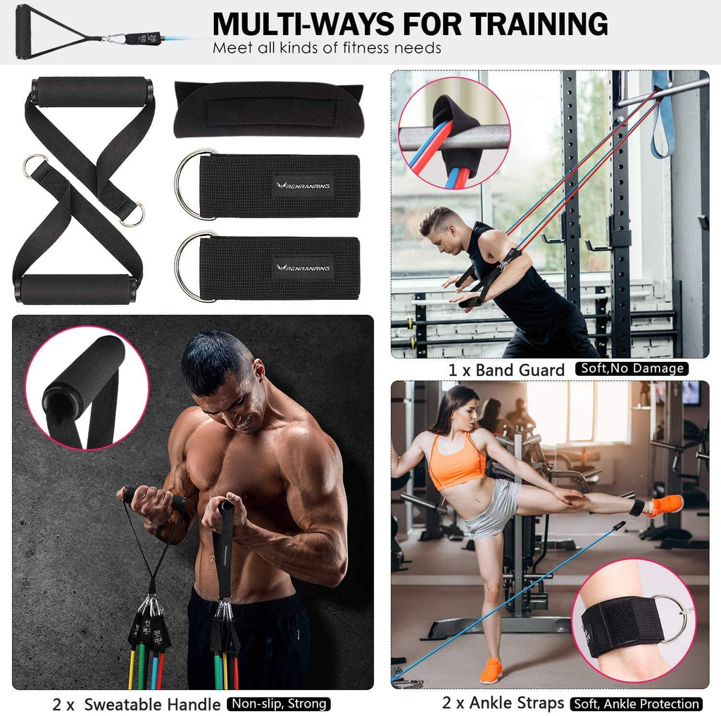 Resistance Bands Set, LT Exercise Bands with Door Anchor, Handles, Waterproof Carry Bag, Legs Ankle Straps for Resistance Training, Physical Therapy, Home Workouts -11pcs